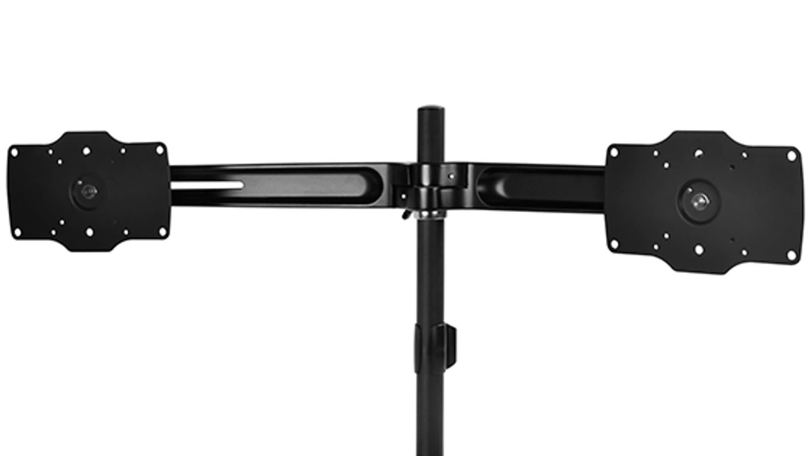 Каждый монитор, подвешиваемый на SST-ARM23BS-L, может весить до 15 кг. Сама опора весит 5,15 кг, а ее габариты равны 1066 x 505 x 307 мм. В отличие от меньшей по размерам модели, у SST-ARM23BS-L есть не только точки крепления VESA 100 x 100 мм и 75 x 75 мм, но и 200 x 100 мм. Еще одно отличие — увеличенный до ±20° угол поворота каждого монитора. Всю конструкцию, как и в случае SST-ARM23BS, можно поворачивать на 360°. Углы наклона равны ±15°, регулировка по высоте — 430 мм.