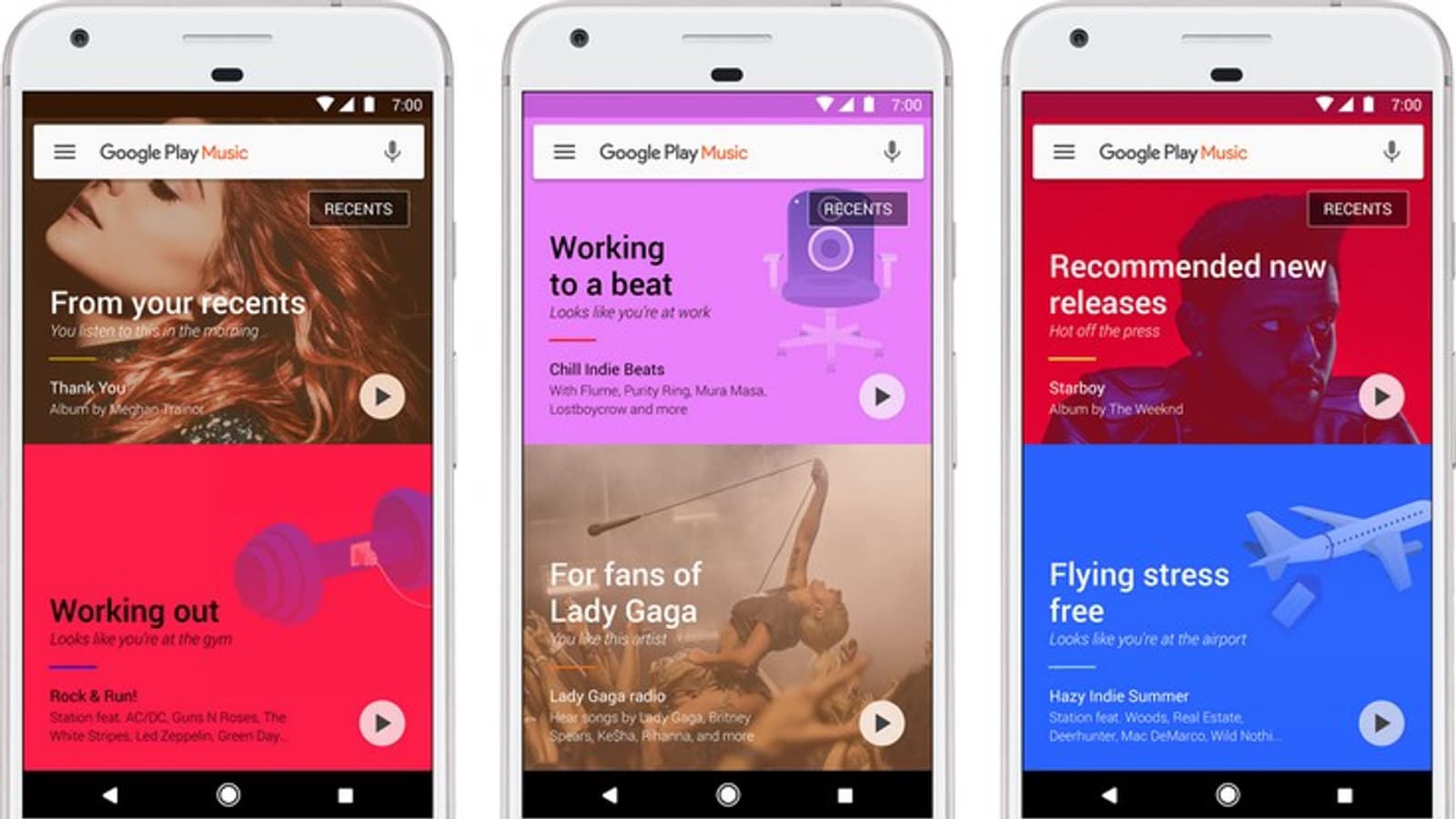 Во-вторых, Google Play Music стал умнее благодаря тому, что теперь полагается на технологии машинного обучения. Они ответственны за подбор музыки для каждого пользователя. Сервис научился учитывать не только музыкальные предпочтения, но и время, местоположение человека и даже погоду за окном.