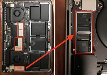 В старших версиях новых ноутбуков Apple MacBook Pro SSD припаян к системной плате