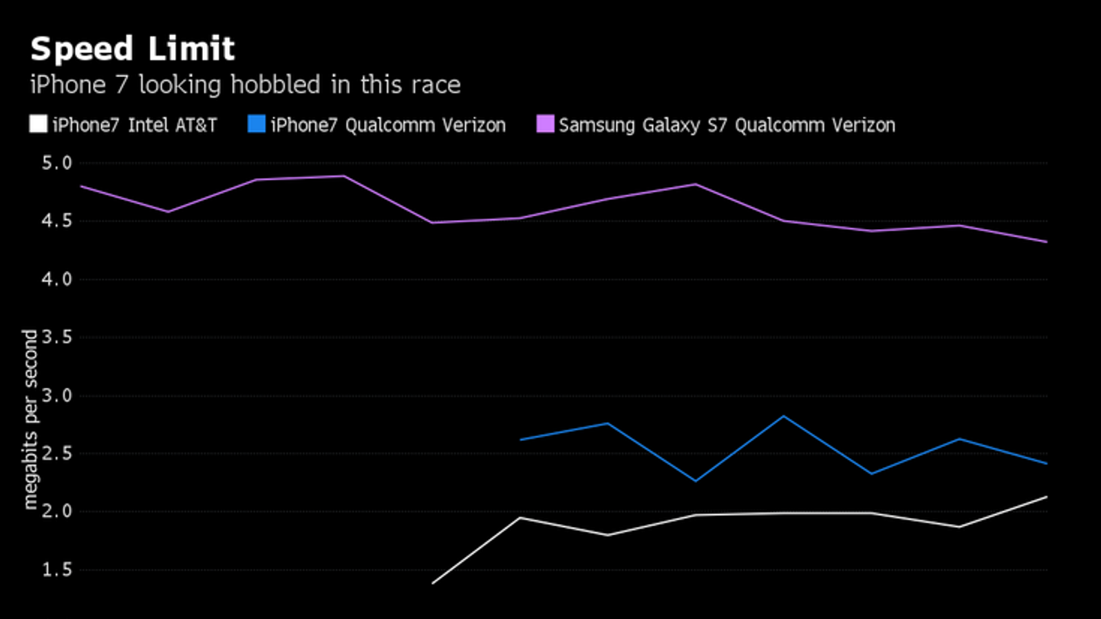 Специалисты пришли к выводу, что Apple пришлось несколько ограничить возможности новых модемов Qualcomm X12, чтобы они не выделялись на фоне продукции Intel. Насколько быстрее могли бы работать модемы Qualcomm в отсутствие ограничений, неясно. Но можно узнать примерно, сравнив с возможностями смартфона Samsung Galaxy S7, оснащённого SoC Snapdragon 820 с тем же модемом. Преимущество последнего может достигать 20-25%.