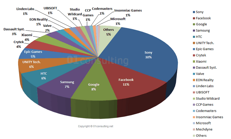 На втором месте якобы расположилась Facebook с долей 11%, а за ней следует Google с долей 8%. Аналитики говорят, что эти игроки не могут похвастаться той же пользовательской базой, что и Sony, но обе уже генерируют «сотни миллионов долларов» выручки. Samsung и HTC с долями 7% и 6% соответственно замыкают пятёрку лидеров.
