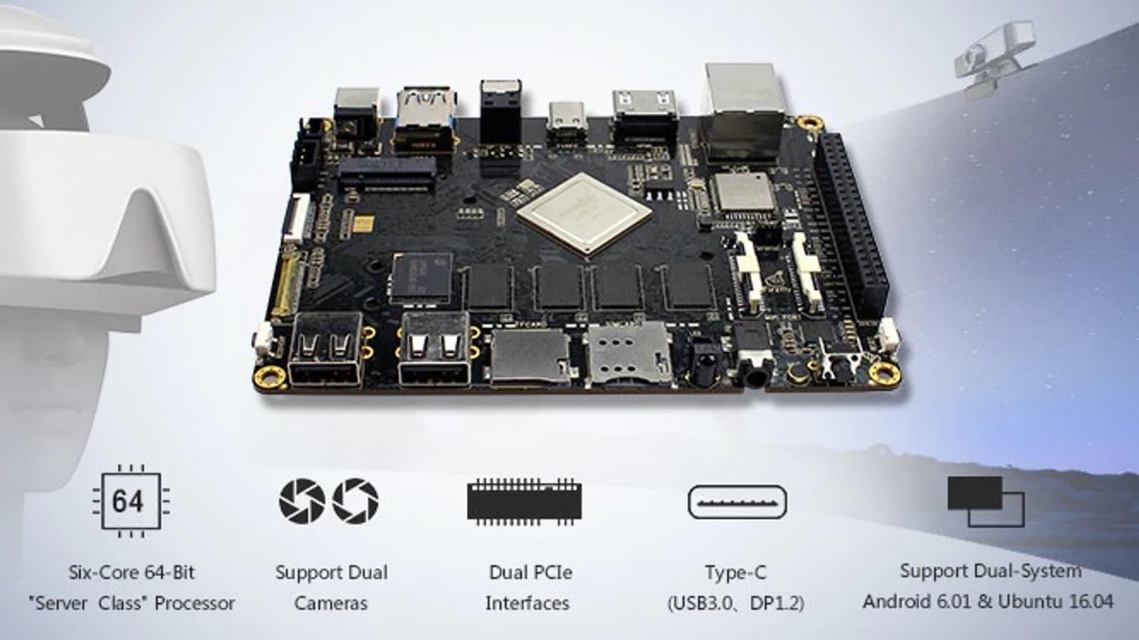 Изображение можно выводить посредством одного порта HDMI 2.0, одного DisplayPort 1.2, eDP 1.3 или MIPI-DSI, имеется оптический аудиовыход S/PDIF. Порт Gigabit Ethernet реализован на микросхеме Realtek RTL8211E, адаптер Wi-Fi 802.11ac (AmPak AP6354) поддерживает работу в режиме 2×2 MIMO. Распаяно по два порта USB 2.0 и USB 3.0, из них один Type-C. Есть трехконтактный отладочный порт, один слот mini-PCIe для мобильного модема и 42 вывода GPIO с шинами I2S, ADC, I2C, SPI и т. д. Габариты восьмислойной платы равны 12,4 х 9,3 см. Firefly-RK3399 будет работать под управлением Android 6.0.1 и Ubuntu 16.04, минимальный взнос для ее получения с рядом аксессуаров составляет $139.