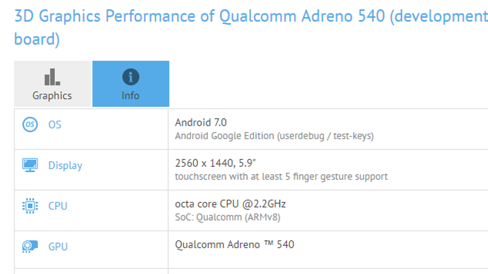 Теперь же в базе GFXBench появилось некое устройство для разработчиков на основе Snapdragon 835. На это указывает использование GPU Adreno 540. Само устройство нас интересует мало. Но благодаря ему мы знаем, что однокристальная система включает восемь процессорных ядер. Старший кластер работает на частоте 2,2 ГГц, но это не говорит о том, что такая частота будет у серийных SoC.
