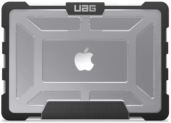 Чехол из поликарбоната и резины обеспечивает защиту от появления царапин и потертостей, а также от повреждений при падении. Как утверждается, ноутбук в этом чехле способен выдержать ударные нагрузки при падении, указанные в тесте MIL-STD 810G 516.6. Чтобы ноутбук лучше держался в руке при переноске, в районе петель есть текстурированная вставка FrogSkin. В чехле есть вентиляционные отверстия.