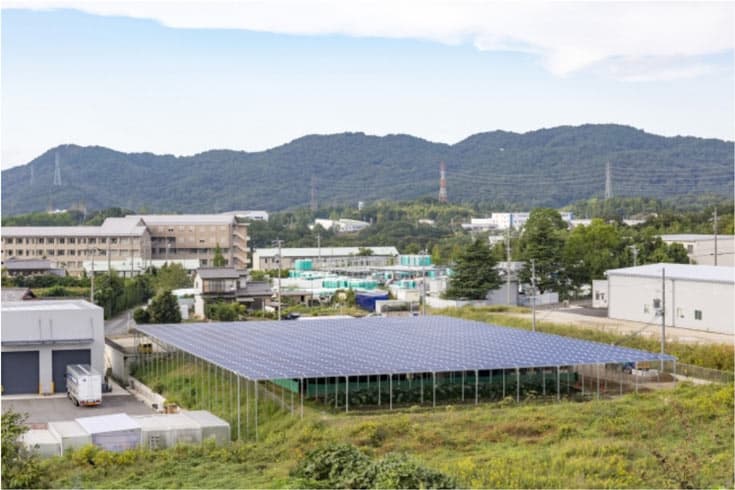 Чтобы опробовать идею на практике, компания Sanki Kohmuten приобрела заброшенную ферму и построила на этом участке солнечную электростанцию. Батарея из 1125 панелей суммарной мощностью 290 кВт занимает площадь около 3400 м². Под солнечными панелями расположено более 5500 поленниц, на которых растут грибы шиитаке.
