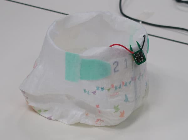 Специалистами одного из японских университетов создан прототип подгузника, уведомляющего о необходимости замены по беспроводному подключению. Особенность изделия заключается в том, что в нем нет обычного элемента питания — электроэнергия, необходимая для работы электронных цепей, вырабатывается из мочи.