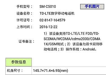 Смартфон Samsung Galaxy C5 Pro сертифицирован TENAA