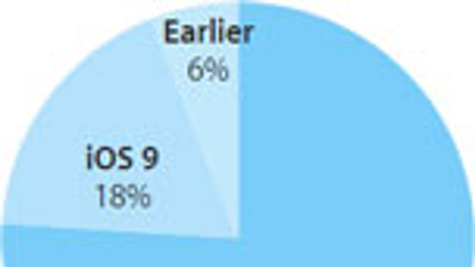 Компания Apple опубликовала статистику, показывающую доли разных версий операционной системы iOS. По состоянию на 4 января 2017 года новейшая версия iOS 10 была установлена на 76% активных совместимых устройств, под которыми следует понимать смартфоны iPhone, планшеты iPad и проигрыватели iPod, посещающие каталог App Store. Доля iOS 9 равна 18%. Все предыдущие версии совокупно занимают оставшиеся 6%.