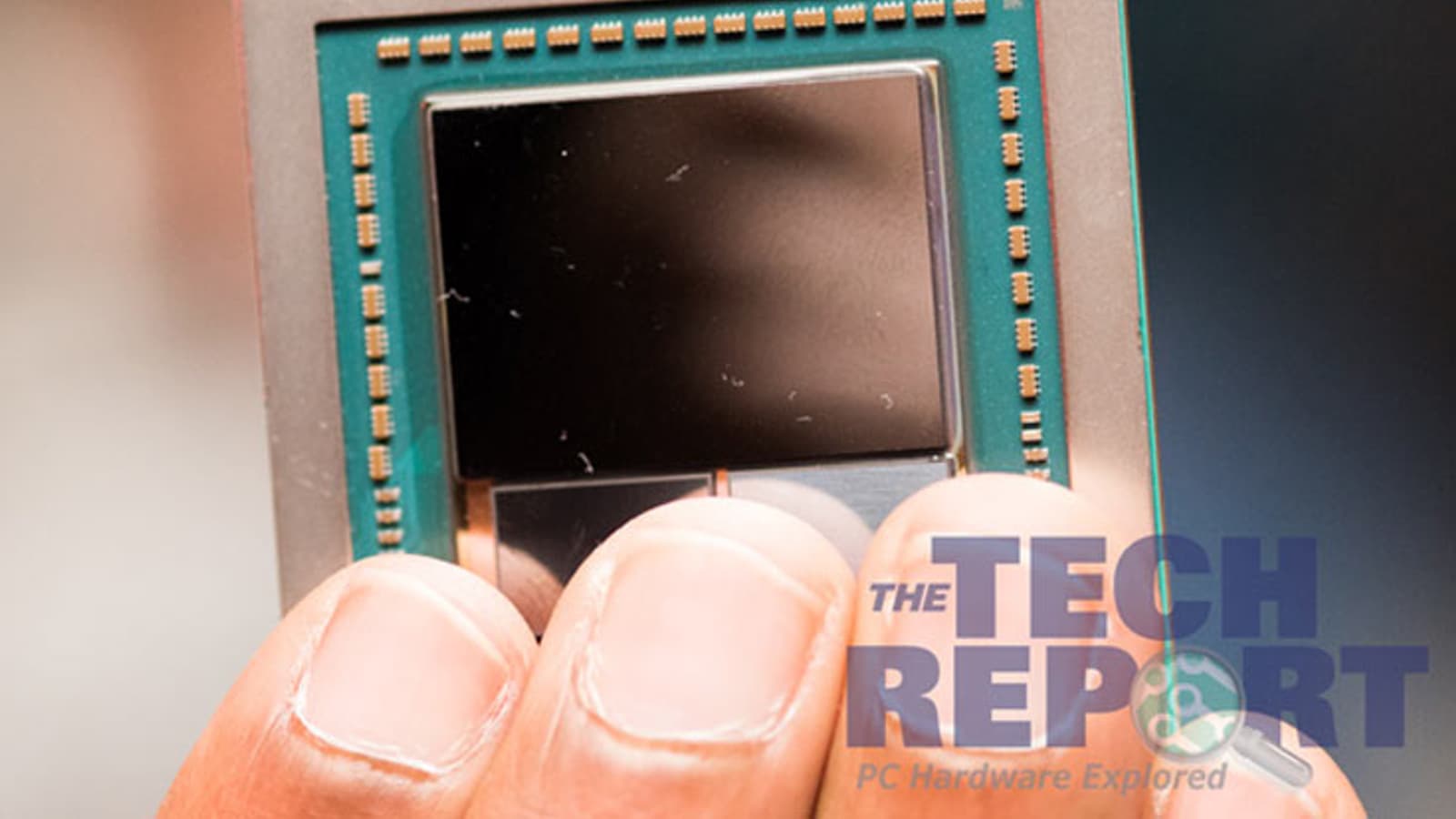 На снимках виден кристалл самого GPU и расположенные рядом с ним кристаллы памяти. Точнее говоря, стопки кристаллов памяти HBM2.