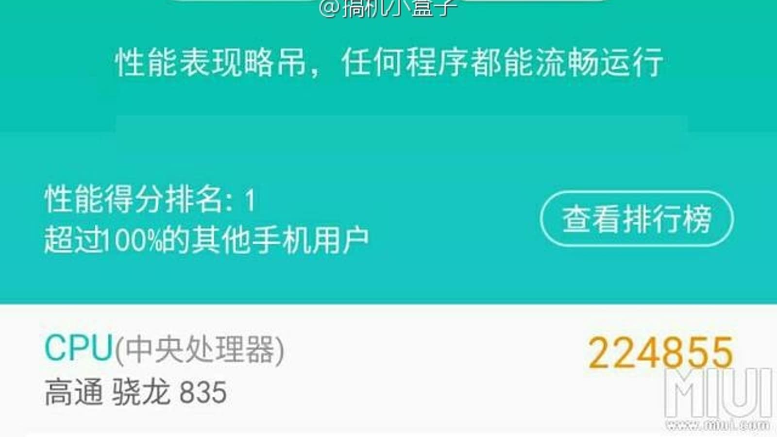 Чуть позже в китайской социальной сети Weibo появилось еще одно изображение, на котором запечатлен результат прохождения теста Master Lu. Смартфон Xiaomi Mi6 набрал в этом тесте 1103215 баллов. Как утверждает источник, этот результат идентичен 224855 баллам в тесте AnTuTu. То есть в ближайшее время на рынке появится очередной самый быстрый смартфон.