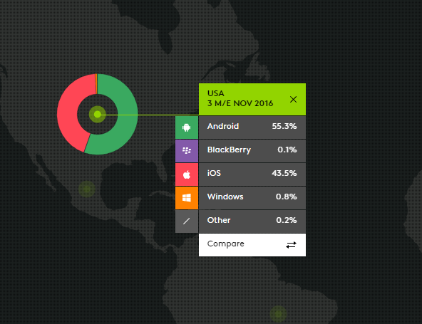Если рассматривать изменения за год, то ситуация будет несколько иной. В Китае доля Android выросла на 7,2 процентных пункта, а доля iOS снизилась на 5,4 процентных пункта. В США же доля Android снизилась на 5,1 процентного пункта, а доля iOS выросла на 6,4 процентных пункта.