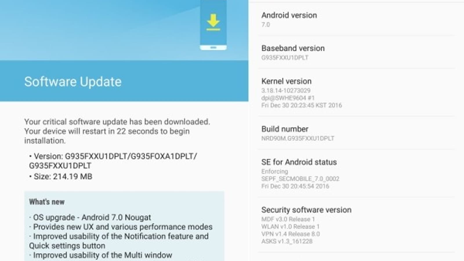 Как и в случае с другими устройствами, Android 7.0 Nougat для Samsung Galaxy S7 и S7 Edge принесет с собой новую систему уведомлений, многооконный режим, улучшенный пользовательский интерфейс, а также повышенную производительность.