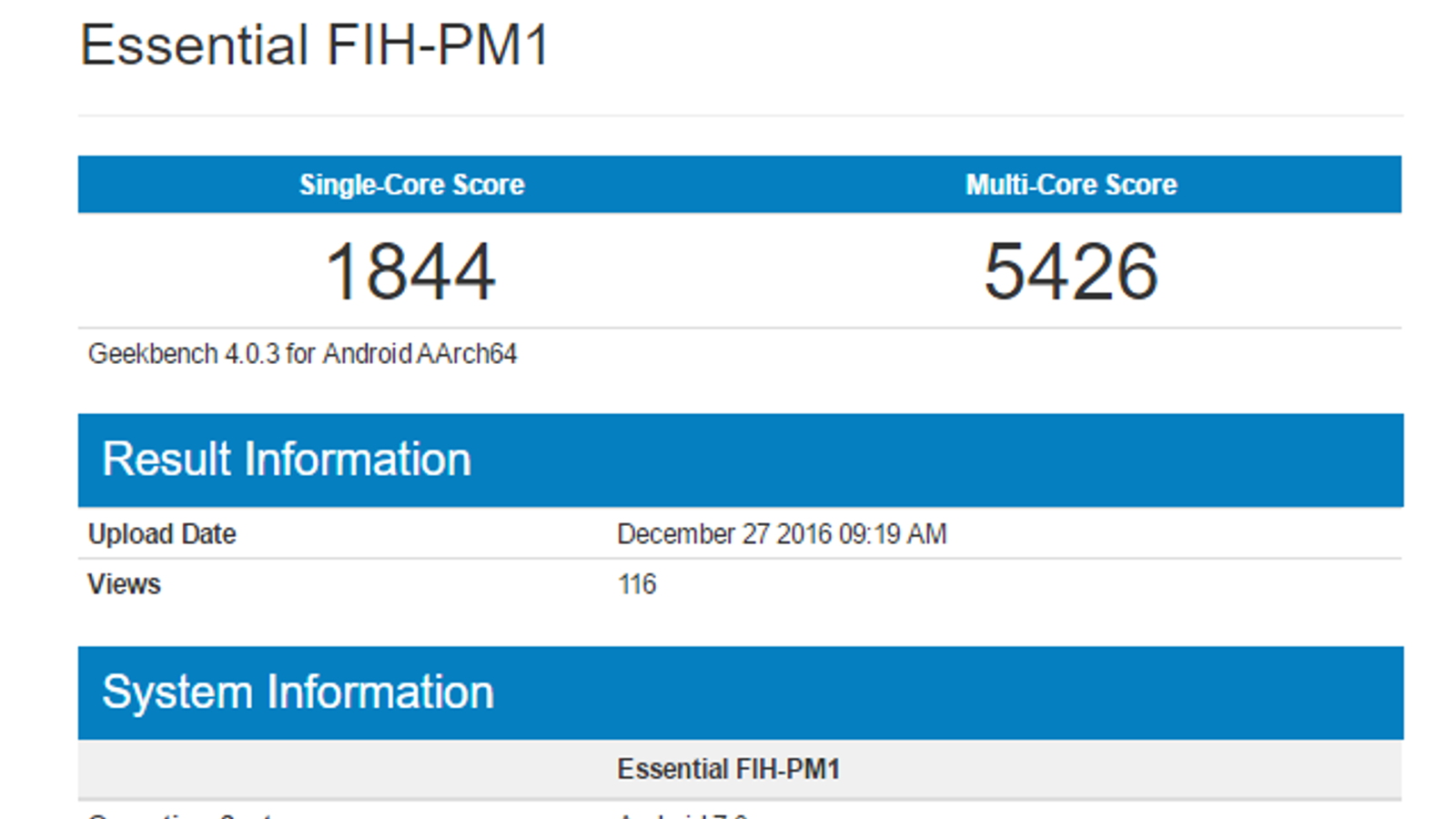 Некоторое время назад в базе данных тестового пакета Geekbench появилось устройство под названием Essential FIH-PM1. Тогда никто не знал, о каком именно устройстве идет речь, однако после появления информации о компании Essential и ее первом продукте, ситуация стала проясняться.