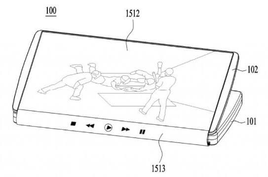 Очевидно, что компания LG также работает над подобными концептами. Это подтверждает новый патент, в котором описывается смартфон со сгибающимся дисплеем. В сложенном состоянии экран не прячется внутри устройства, а, наоборот, занимает большую часть передней и задней панелей. Кроме того, на торцевой части, по которой происходит сгиб, находится дополнительная сенсорная строка с уведомлениями и, например, кнопками управления музыкальным плеером.