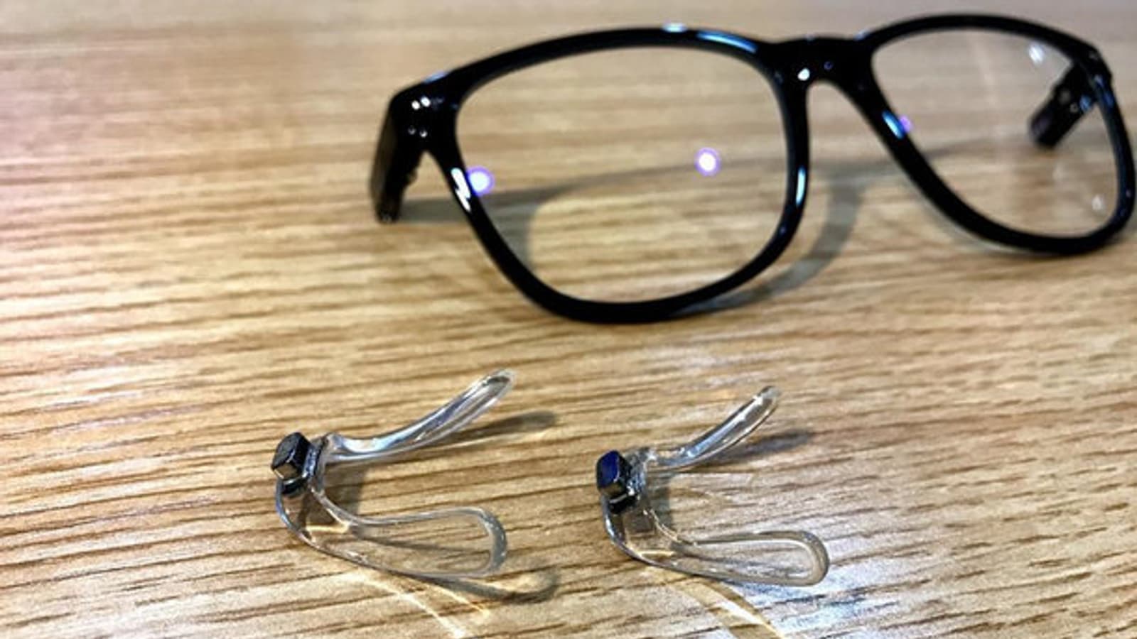 В упаковке вы найдете три коробки, которые содержат сами очки, дужки и носоупоры. После сборки масса очков не превышает 21 г.