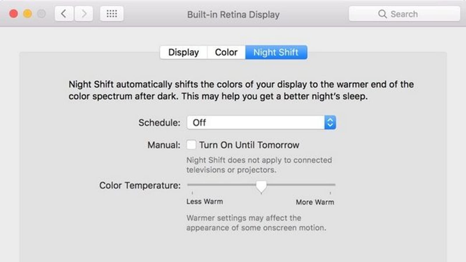 Теперь же компания Apple сделала доступным режим Night Shift для компьютеров и ноутбуков, которые работают под управлением операционной системы macOS Sierra (функция доступна в бета-версии 10.12.4).