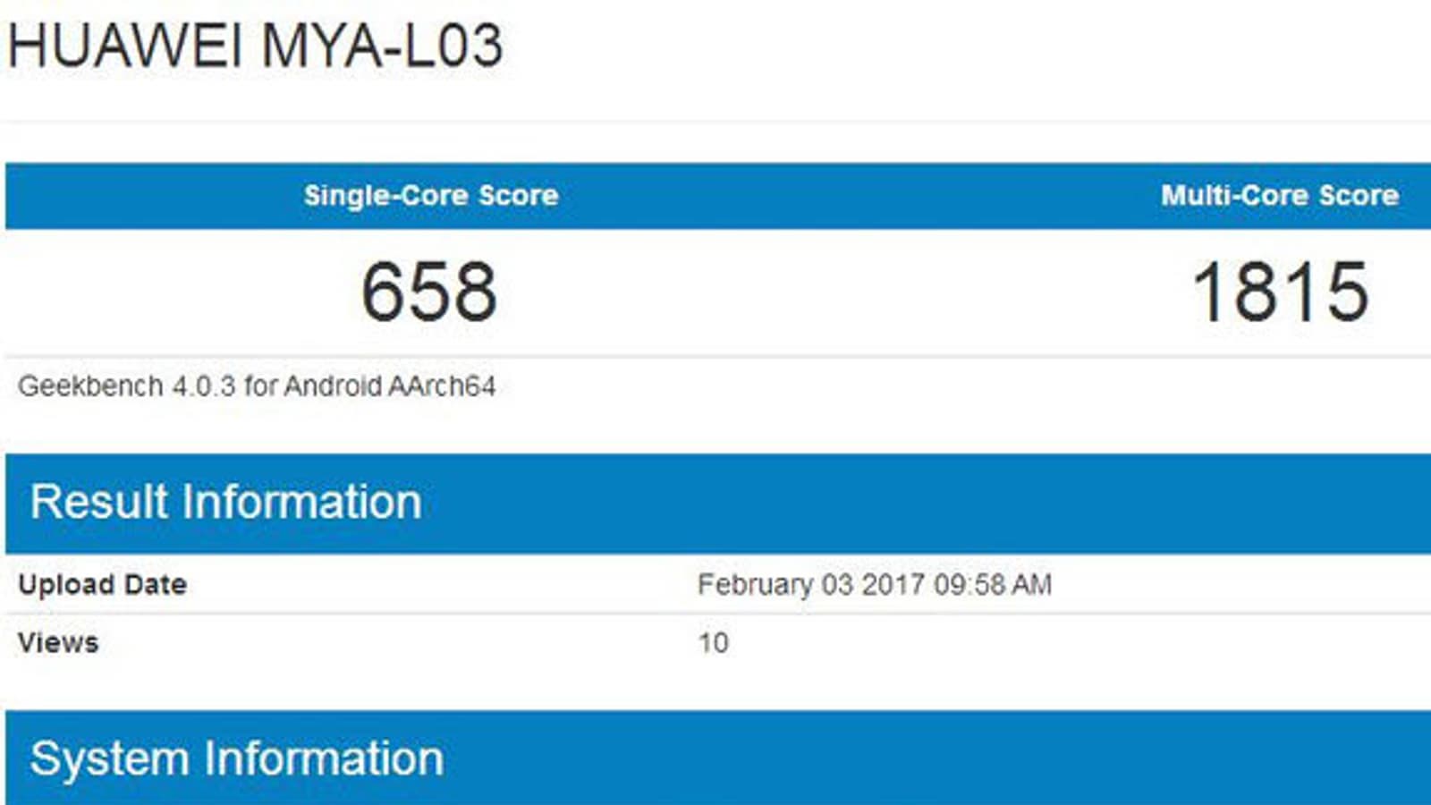 В базе данных тестового пакета Geekbench появился новый смартфон Huawei с модельным номером MYA-L03, который, если верить информации китайских источников, поступит в продажу под названием Huawei Maya.