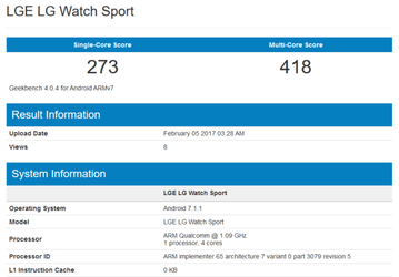 Умные часы LG Watch Sport протестированы в Geekbench, анонс запланирован на 8 февраля