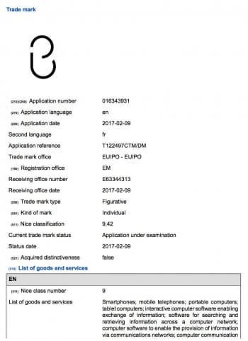 В описании торговой марки говорится об интерактивном программном обеспечении для смартфонов и портативных компьютеров, которое позволяет обмениваться информацией внутри Сети и осуществлять взаимодействие между пользователем и системой искусственного интеллекта.