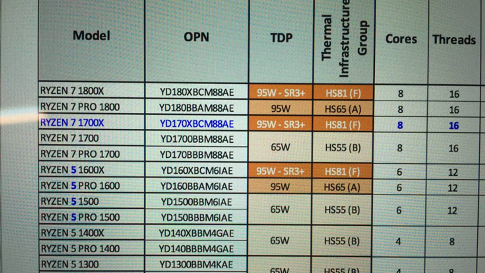 Источник опубликовал новые сведения обо всех 17 моделях AMD Ryzen. Эти сведения опровергают предположение, что шестиядерных процессоров AMD Ryzen может и не быть. Как утверждается, в линейке будет пять восьмиядерных моделей, четыре шестиядерные и восемь четырехъядерных. Все они, за исключением двух младших, поддерживают многопоточное исполнение, при котором каждое ядро может исполнять два потока команд.