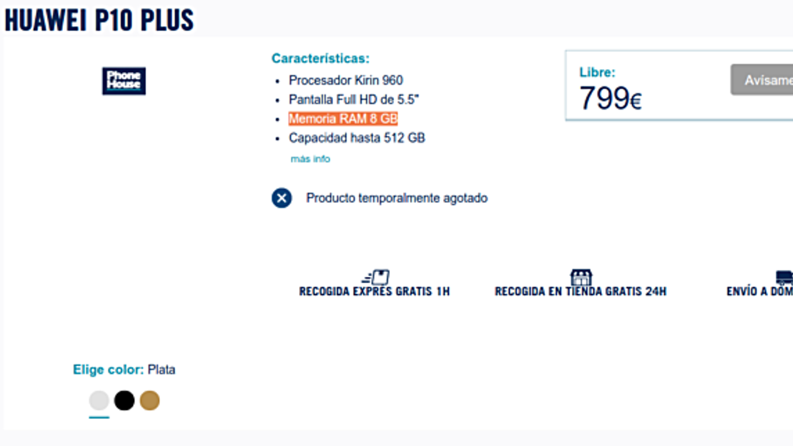 Испанский интернет-магазин Phone House создал страничку для смартфона Huawei P10 Plus, отметив, что он будет продаваться по цене 799 евро.