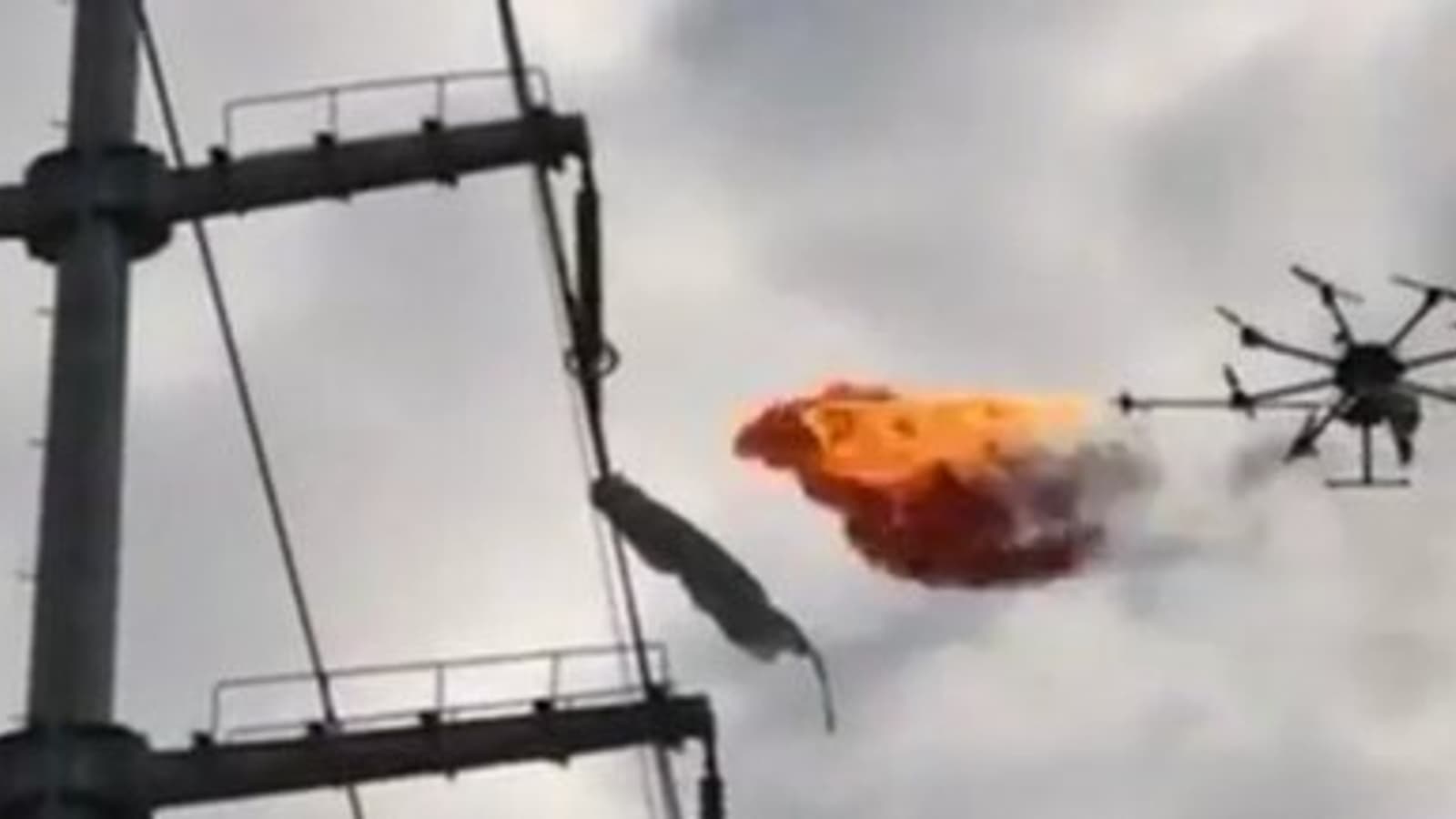 Работники, которые занимаются обслуживанием линий электропередач, используют дрон, оснащенный огнеметом, для очистки ЛЭП от всевозможного мусора. Получается и зрелищно, и довольно эффективно.