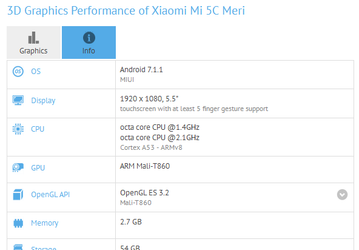 GFXbench подтверждает использование SoC Pinecone в смартфоне Xiaomi Mi 5C