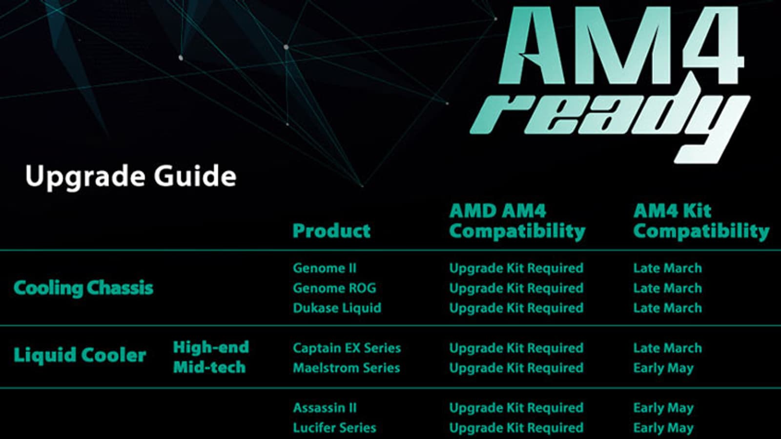 Компания DeepCool опубликовала список совместимости, из которого следует, что часть воздушных охладителей уже совместима с AM4, а для остальных будут выпущены специальные крепления. Крепления также планируется выпустить для СВО и корпусов со встроенным охлаждением.