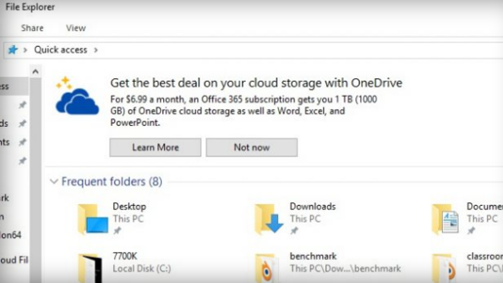 В данном случае Microsoft рекламирует собственный продукт в виде подписки на облачное хранилище OneDrive. Отказ от предложения вовсе не означает, что пользователь больше не увидит ровно эту же рекламу несколько позже. Насколько массовый характер носит такой вид рекламы в Windows 10, пока неясно.