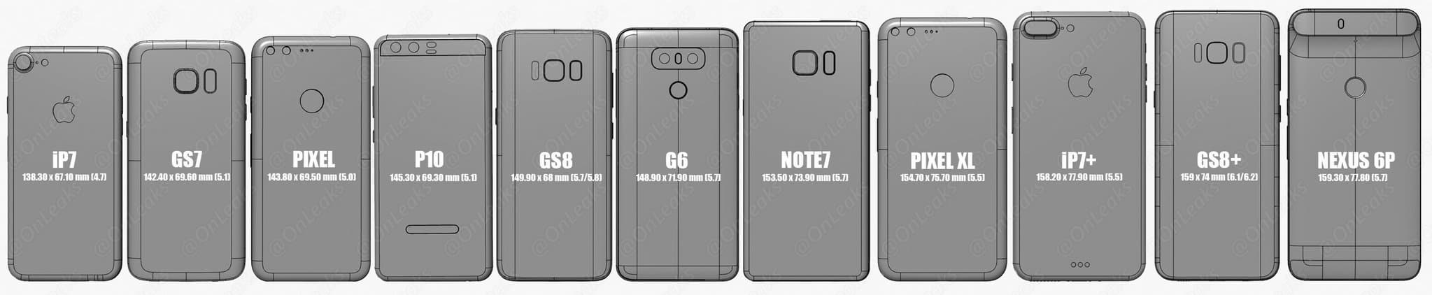 Если говорить точнее, то на изображении сравниваются габариты этих устройств в плане. Это позволяет понять, насколько Samsung Galaxy S8 и Galaxy S8+ будут больше/меньше тех или иных смартфонов.