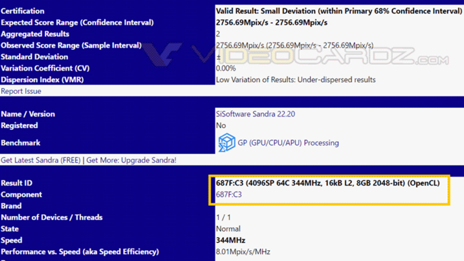 Источник опубликовал сведения, полученные с помощью теста SiSoftware Sandra 22.20, запущенного на ПК с GPU AMD Vega.