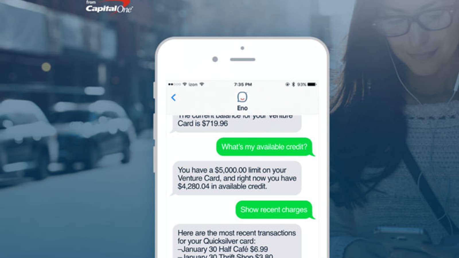 Компания Capital One Financial начала пробную эксплуатацию виртуального банковского служащего Eno, который общается с пользователями с помощью текстовых сообщений на естественном языке.