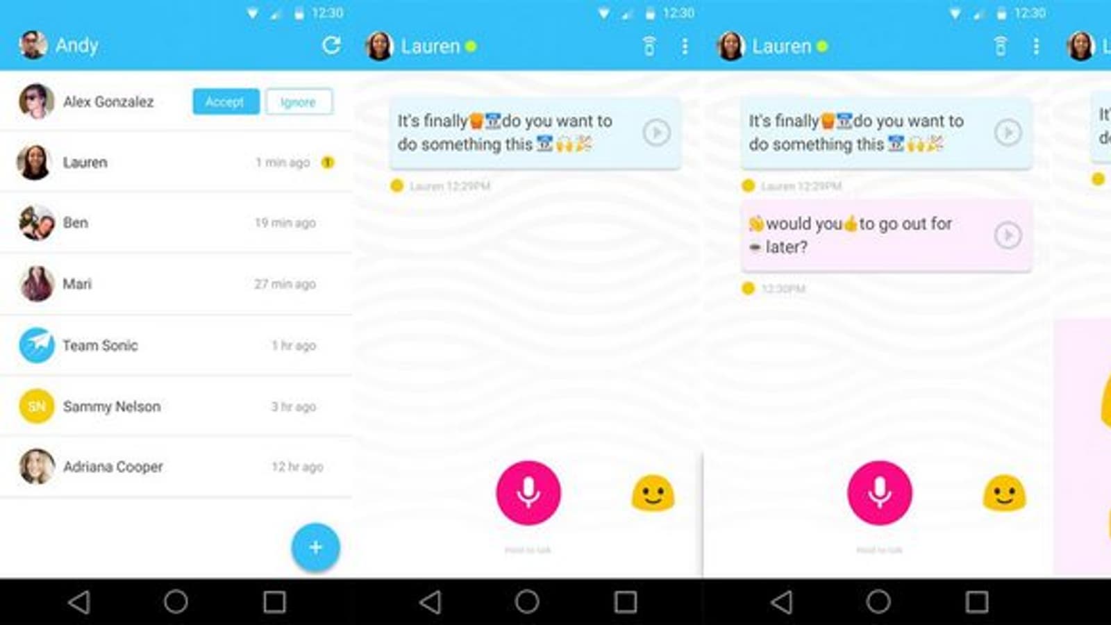 Supersonic Fun Voice Messenger представляет собой переосмысленный вариант мессенджера. Основная его особенность заключается в том, что в приложении нельзя набрать и отправить текст. Общаться предлагается посредством голосовых записей. Такая функция сейчас есть практически в любом мессенджере, но здесь это единственный способ.