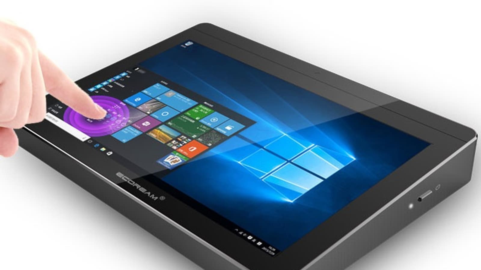 Главная особенность устройства, экран, не обладает передовыми характеристиками: при восьмидюймовой диагонали и матрице IPS разрешение всего 1280 х 800 пикселей. Отметим наличие порта Gigabit Ethernet и беспроводного адаптера Wi-Fi 802.11n или двухдиапазонного 802.11ac, видеовыхода VGA в дополнение к привычному HDMI 1.4b, двух портов USB 3.0, двух USB 2.0 и одного USB Type-C. От планшетных родственников унаследована фронтальная камера разрешением 2 Мп и аккумулятор емкостью от 4000 до 10000 мА·ч.