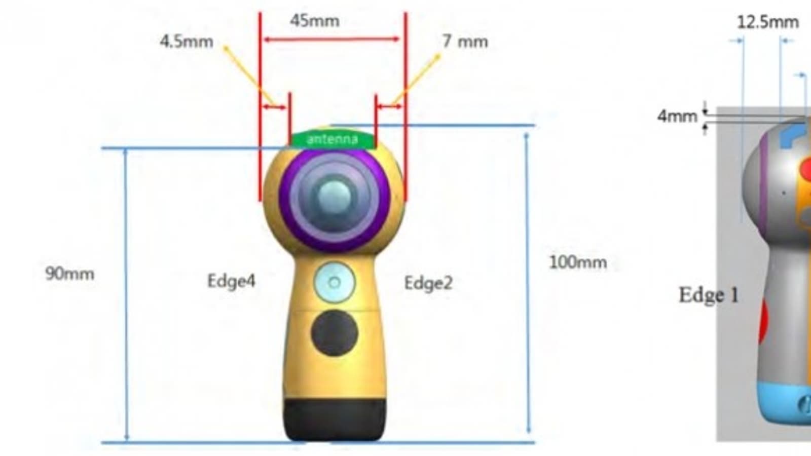 Камера Next Gear 360 будет миниатюрной — 100 мм в высоту и 45 мм в диаметре. На рукоятке камеры, способной также служить опорой, расположена кнопка спуска затвора. Номер модели — SM-R210. Прошлогодняя модель носит индекс SM-C200.