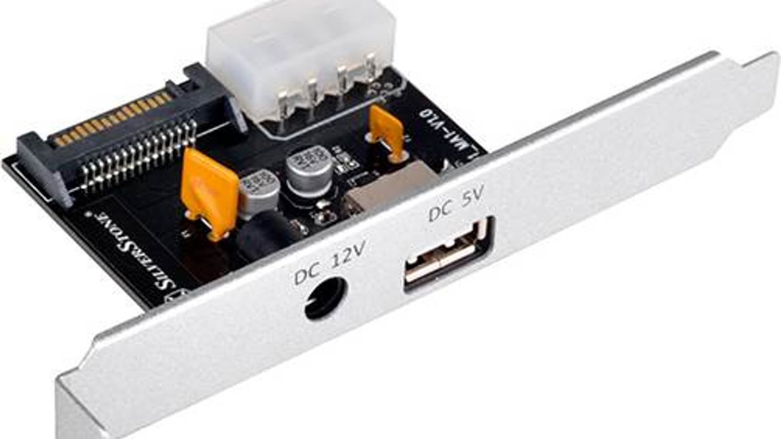 Ассортимент компании SilverStone пополнила плата расширения ECP01, показанная на иллюстрациях. Строго говоря, это не плата расширения, а адаптер питания, устанавливаемый на месте для платы расширения. Он позволяет вывести из корпуса настольного ПК постоянное напряжение 5 В и 12 В, необходимое для питания внешних периферийных устройств.