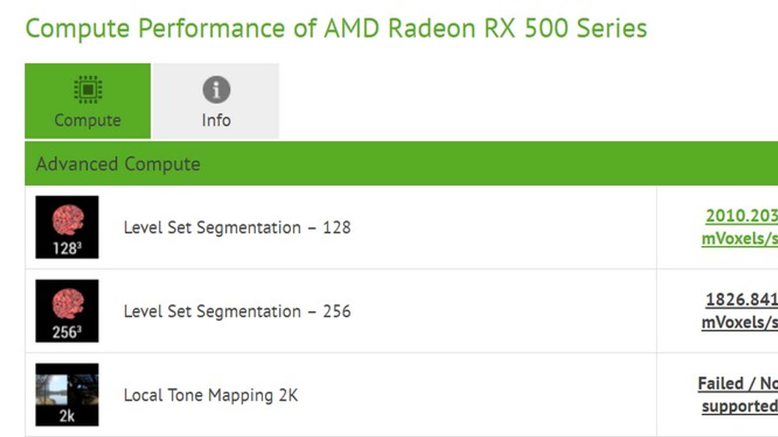Но новые данные указывают на то, что всё обстоит несколько иначе. В частности, в тесте CompuBench появился результат тестирования какой-то 3D-карты линейки RX 500, основанной на GPU поколения Polaris. На это указывает код GFX8, обозначающий именно это поколение. Согласно же другим данным ПО, в конфигурацию графического процессора видеокарты входит 10 исполнительных блоков, что в случае Polaris соответствует 640 потоковым процессорам.