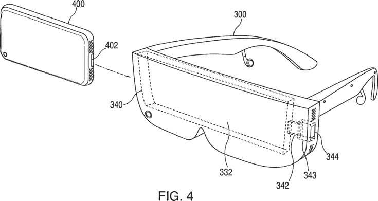 На минувшей неделе американское патентное бюро выдало компании Apple патент №9595237. В нем описана носимая на голове гарнитура, в которой используется дисплей мобильного устройства.