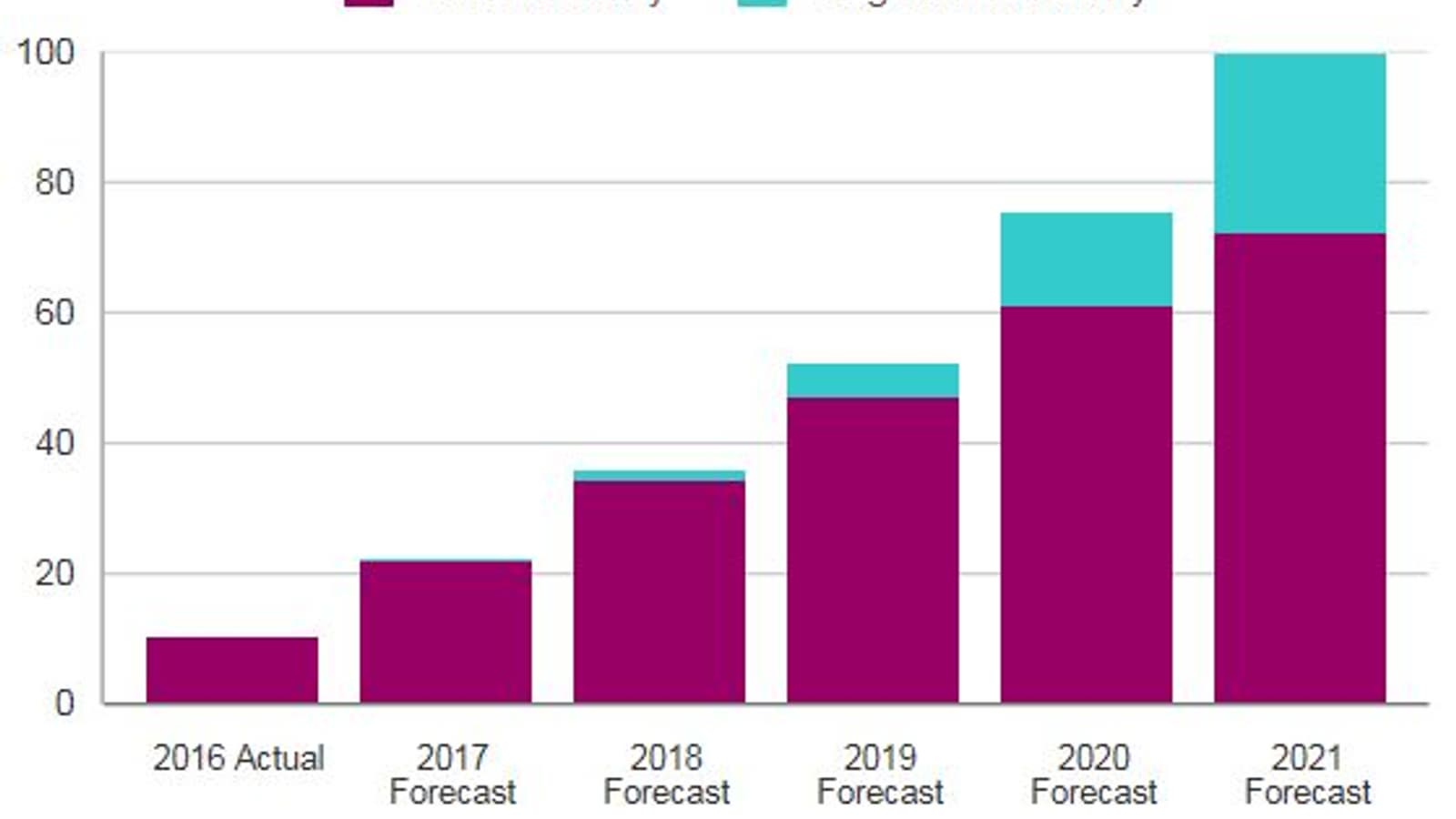 По прогнозу аналитиков, в указанный период доля гарнитур для коммерческого использования увеличится с 20,1% до 38,5%. Это означает, что среднегодовой рост в этом сегменте составит 80%.