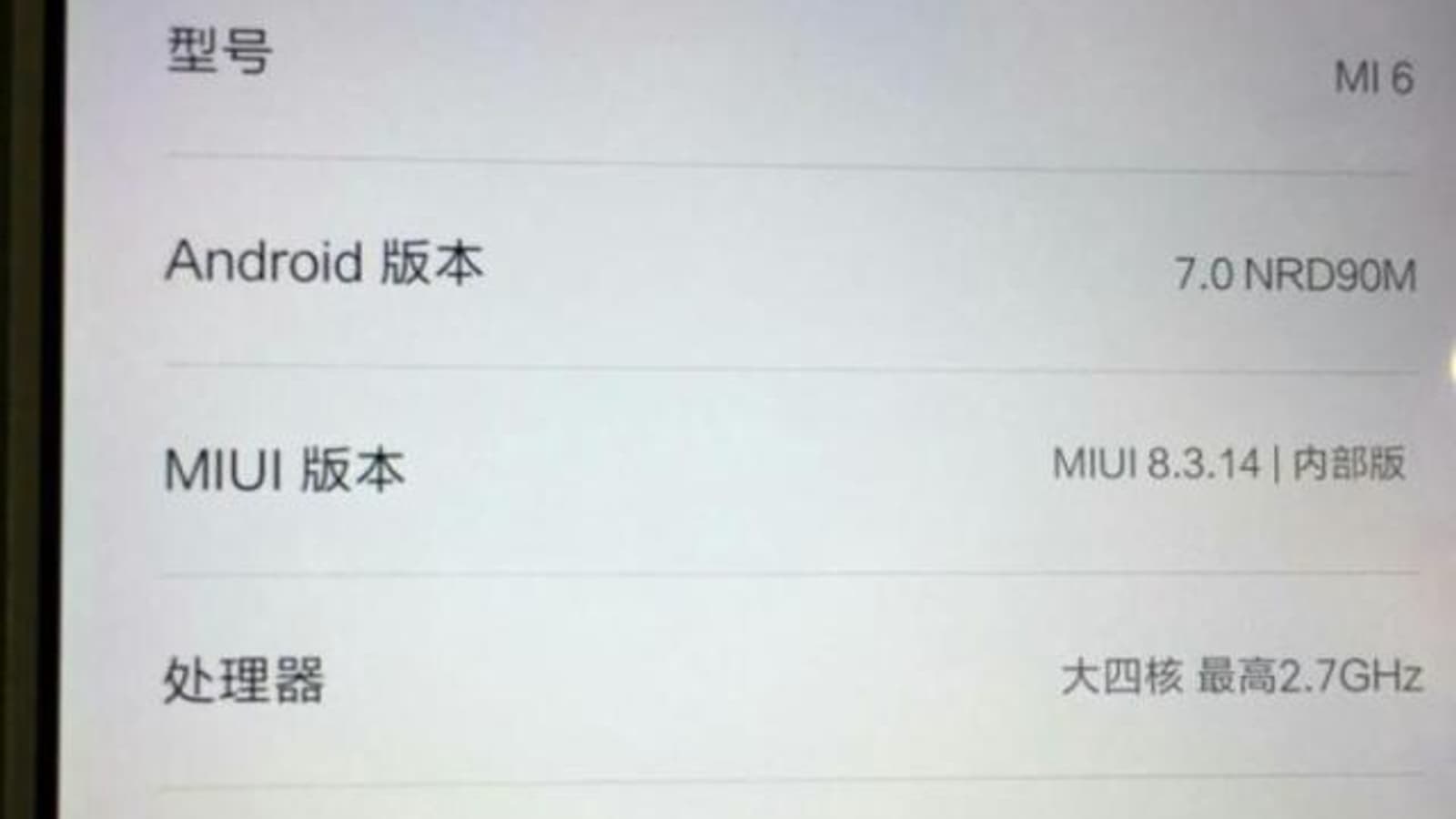 В китайской социальной сети Weibo опубликовали фотографию дисплея нового смартфона Xiaomi Mi6, на которой нам демонстрируют раздел «О телефоне».