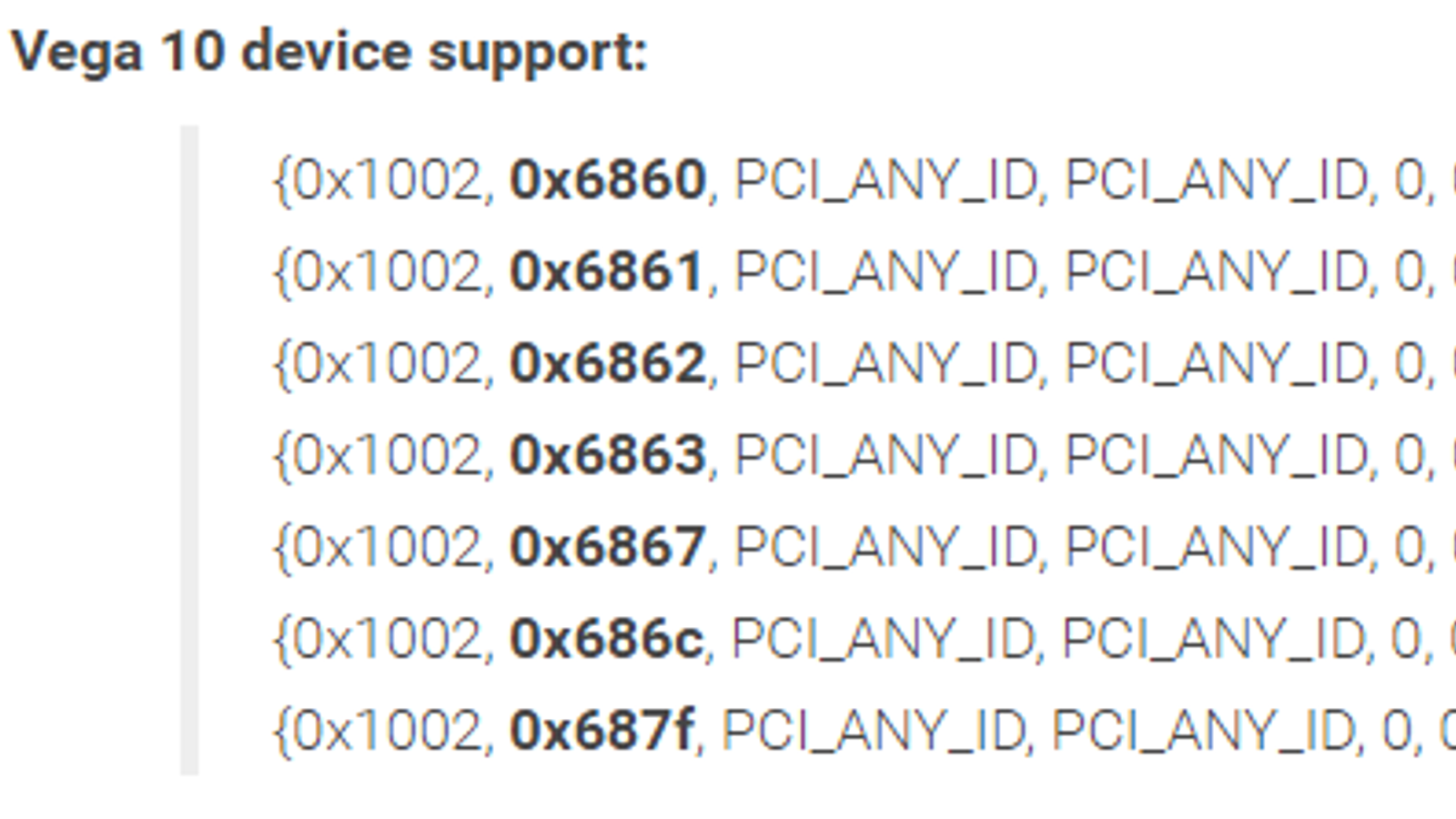 Как сообщает источник, упоминание видеокарт на основе Vega 10 появились в драйверах AMD для ОС Linux. Всего было выпущено 100 патчей, содержащих более 400 000 строк кода. Среди них можно обнаружить семь устройств с GPU Vega 10, содержащих разные идентификаторы.