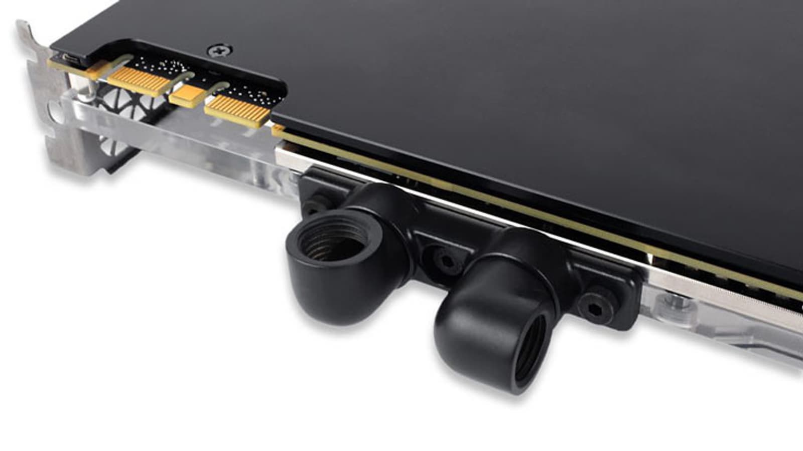 Компания EK Water Blocks представила изделие, которое сама она называет «революционным». Это терминал или порт для подключения шлангов к водоблокам с полным покрытием для 3D-карт. Особенность новинки заключается в том, что встроенные в нее уголковые фитинги могут поворачиваться на любой угол.