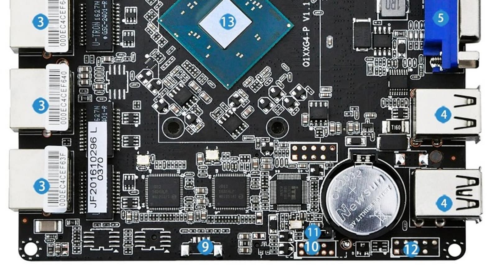 Так, имеется всего один порт SATA 6 Гбит/с и один слот для ОЗУ DDR3 SO-DIMM (до 8 ГБ), хотя два слота mini PCIe улучшают картину: один из них предназначен для SSD с интерфейсом mSATA, второй для беспроводного модуля (к нему подведена только шина USB). Плата Qotom Q1900G4-M основана на четырехъядерной SoC Intel Celeron J1900.
