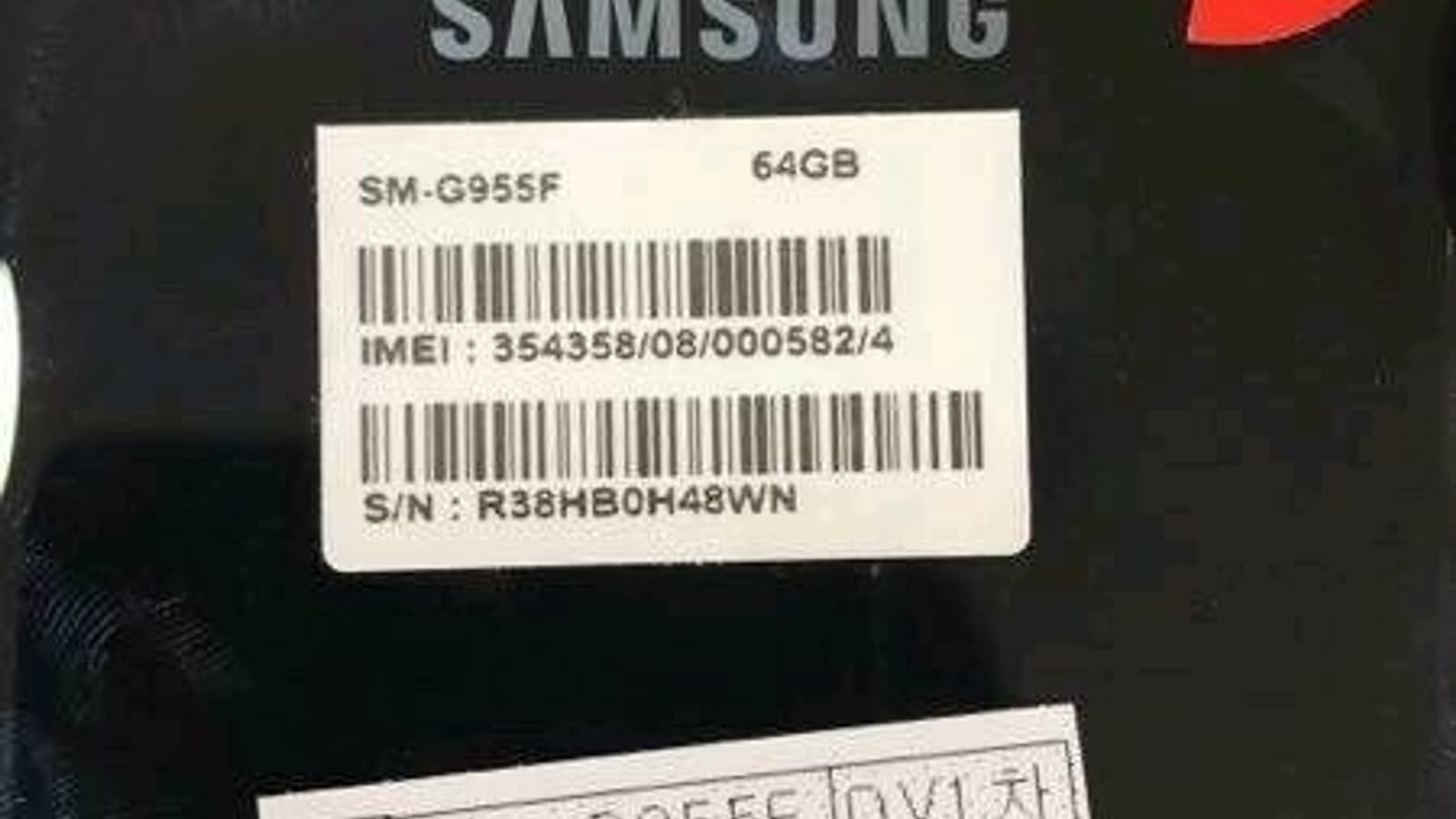 Наклейка указывает на модельный номер SM-G955F, под которым был анонсирован Samsung Galaxy S8+, и наличие 64 ГБ флэш-памяти.