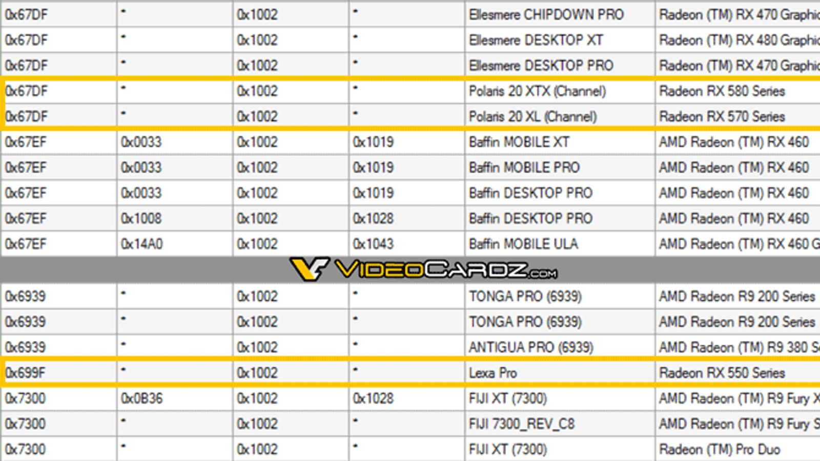 Наши коллеги обнаружили в драйвере 3D-карт серии Radeon RX 500 упоминания графических процессоров AMD Polaris 20. Говоря точнее, основой моделей Radeon RX 580 назван GPU AMD Polaris 20 XTX, а основой моделей Radeon RX 570 — GPU AMD Polaris 20 XL.