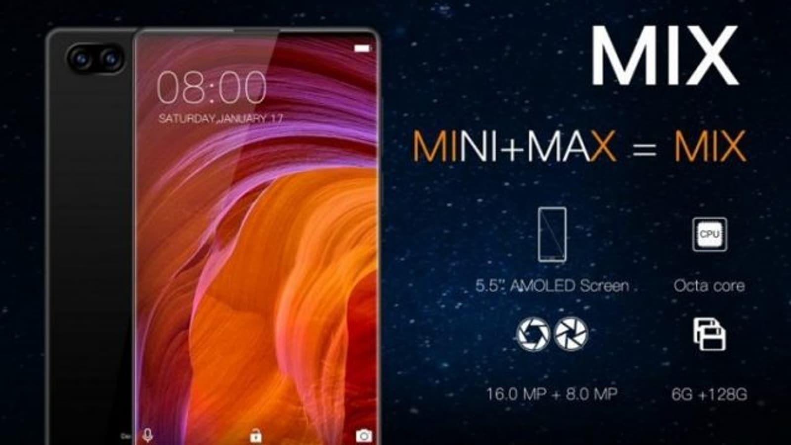 Doogee Mix получит дисплей AMOLED диагональю 5,5 дюйма, однокристальную систему Mediatek Helio P25, 6 ГБ оперативной и 128 ГБ флэш-памяти, а также сдвоенную основную камеру.