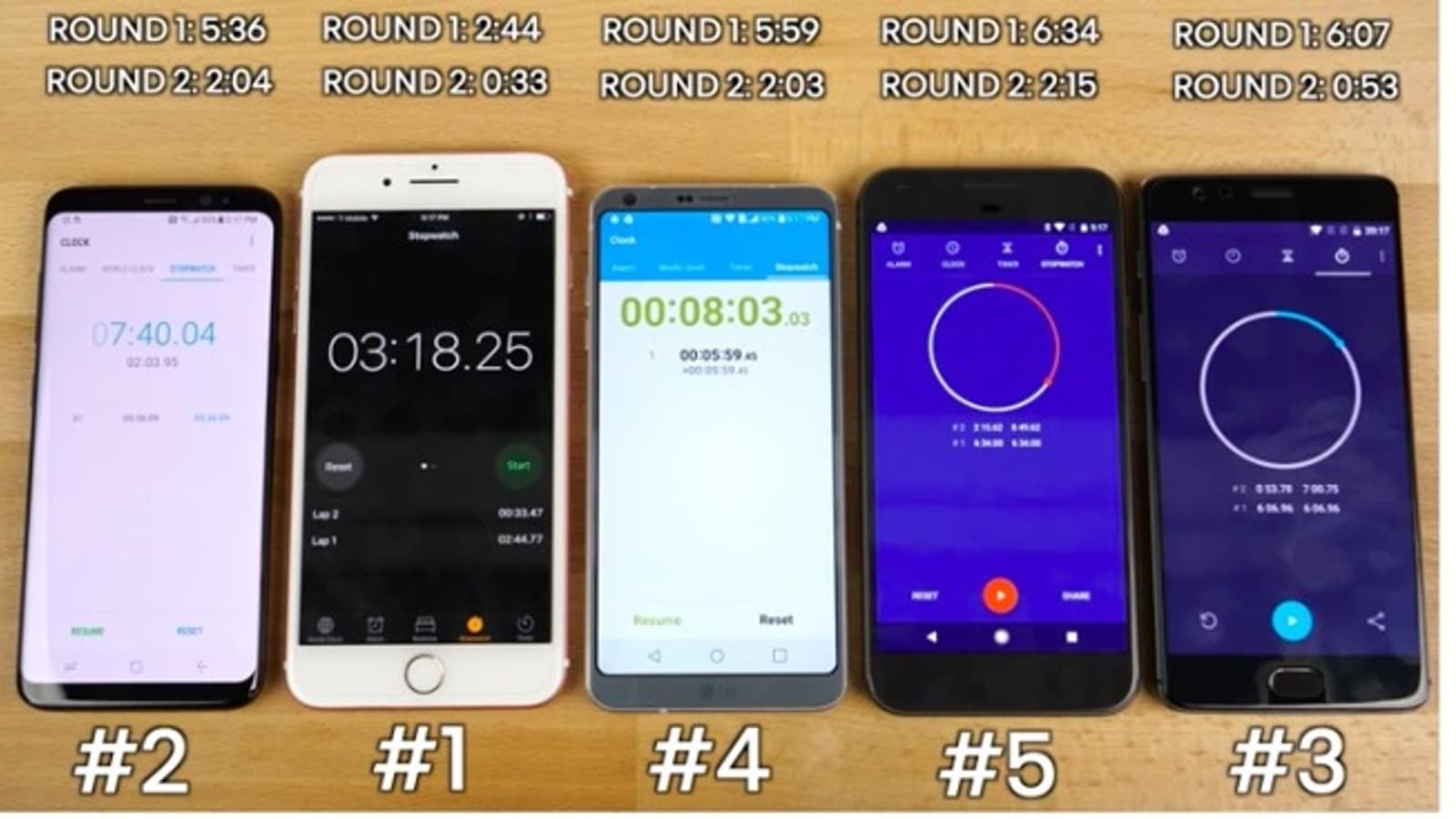Вторым финишировал не Galaxy S8, как можно было бы подумать, а OnePlus 3T. Автор теста поставил его на третье место за то, что он уступил почти всем участникам на первом круге. Но тут стоит отметить, что на второй круг у него ушло более чем в два раза меньше времени, чем у остальных аппаратов с Android.