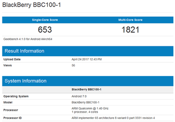 Результаты смартфона BlackBerry BBC100-1 появились в тесте Geekbench