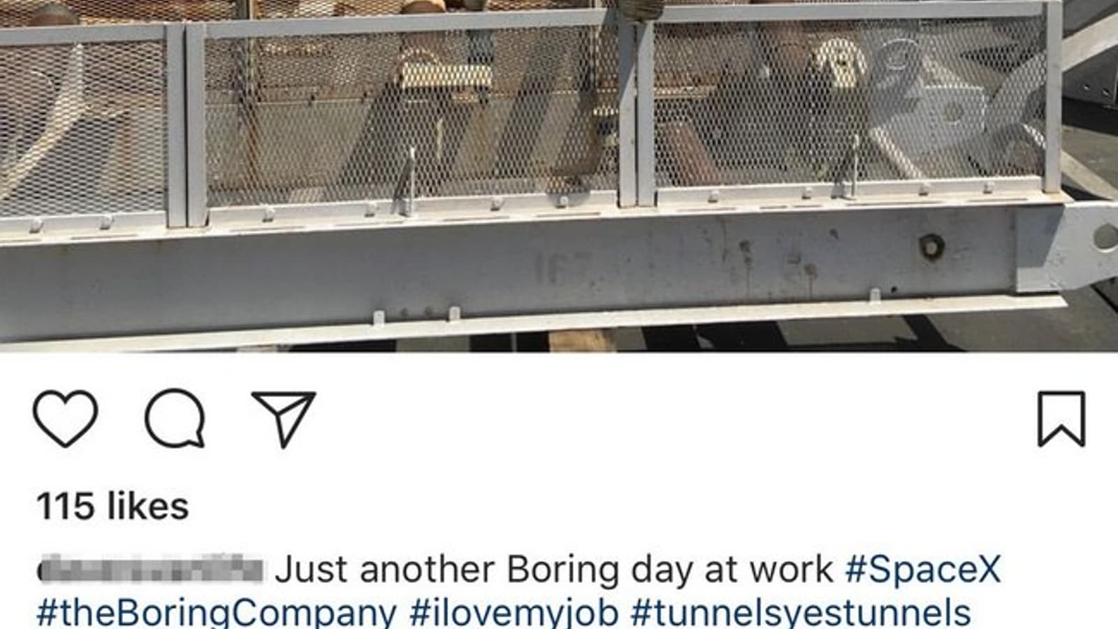 Кроме того, сотрудник SpaceX опубликовал первую фотографию бурильной машины The Boring Company.
