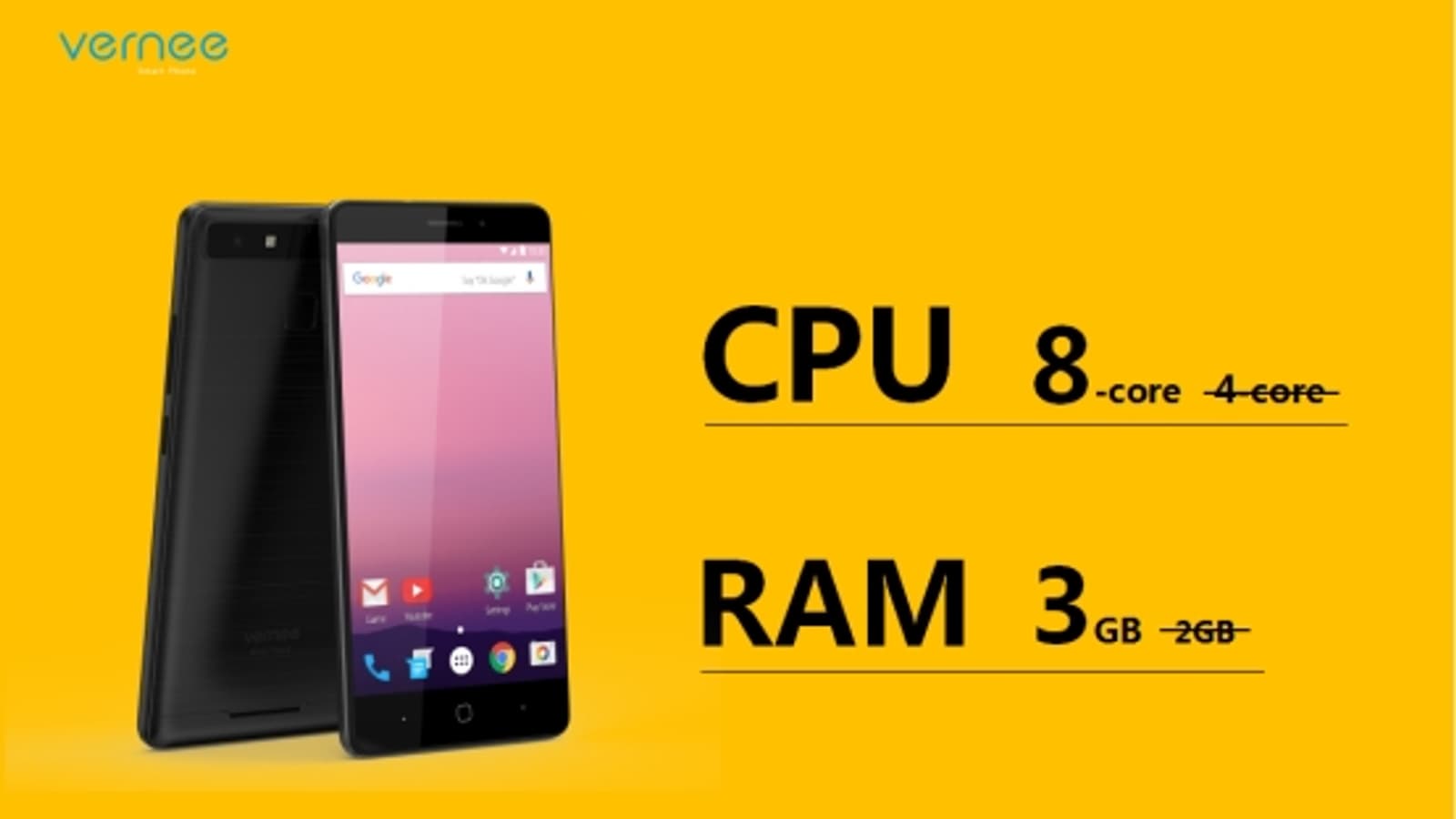Также стало известно, что характеристики смартфона были улучшены. Место SoC заняла восьмиядерная MT6753, объем оперативной памяти увеличился до 3 ГБ. При массе 149 г производитель называет Vernee Thor E самым тонким и легким устройством, оснащенным столь емким аккумулятором.